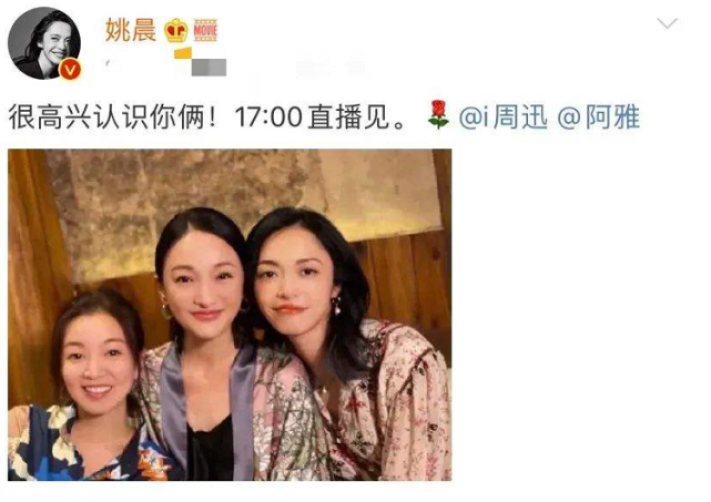 后来姚晨在个人社交账号上,晒出了和周迅,阿雅的合照,三个人的皮肤状态很好,看来应该都保养得不错,尤其是姚晨,皮肤比旁边的周迅好一些。
